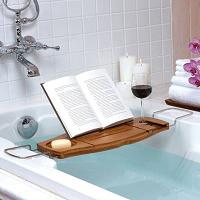 Amazon sale on the Umbra Aquala Bathtub Caddy is 37.96$ + free shipping. As the picture shows, Strong, durable bamboo holds this caddy up. Great resource for reading in the tub.